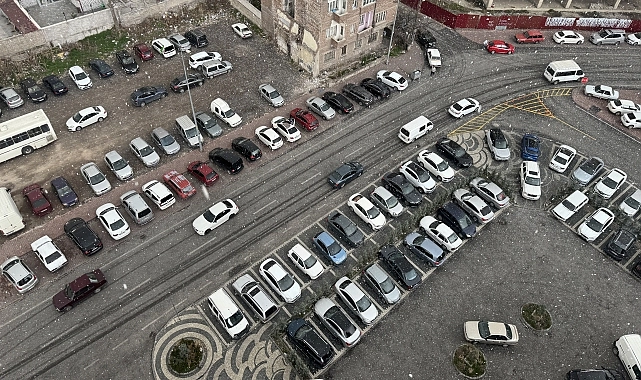 Yağışın ardından yol ve araçların üzeri doluyla kaplandı.