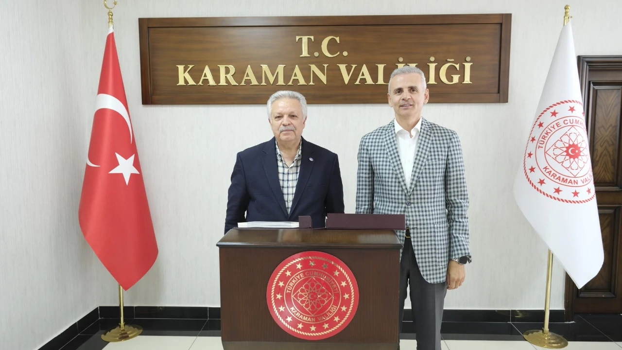 Ziyaretler kapsamında Karaman Valisi Mehmet Fatih Çiçekli’yi de makamında ziyaret eden eski Vali Kahraman, Karaman’da geçirdiği günler ve anılarını Vali Çiçekli ile paylaştı.
