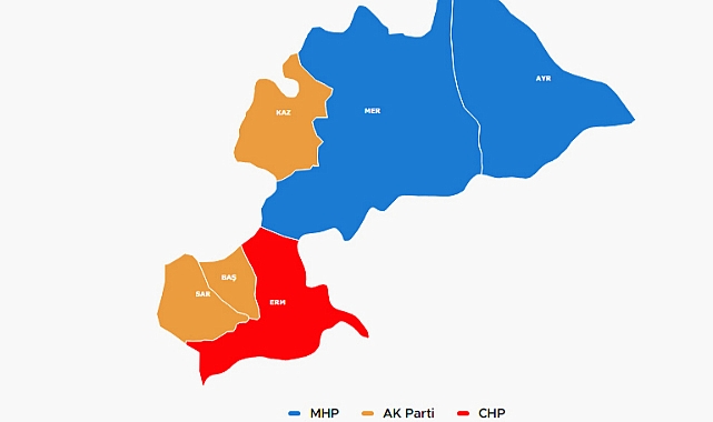 Merkezde durum böyle iken Karaman’a bağlı 5 ilçede farklı sonuçlar ortaya çıktı. Yapılan seçimle AK Parti 3 ilçe ve 2 belde olmak üzere 5 bölgede, MHP İl ve bir ilçe ile iki beldede olmak üzere 4, CHP ise bir ilçe ve bir belde olmak üzere iki Belediye Başkanlığını kazandı.