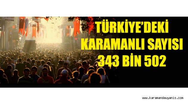ADNKS sonuçlarına göre, Türkiye’de yaşayan Karamanlı sayısı 2014 yılında 339 bin 662 kişi iken, 2015 yılında 3 bin 840 kişi artarak 343 bin 502 kişi oldu. Karaman nüfusuna kayıtlı olan 343 bin 502 kişinin, %57,2'sinin (196 bin 490 kişi) Karaman il sınırları içerisinde, yüzde 42,8'inin (147 bin 12 kişi) ise diğer illerde yaşamakta olduğu tespit edildi.