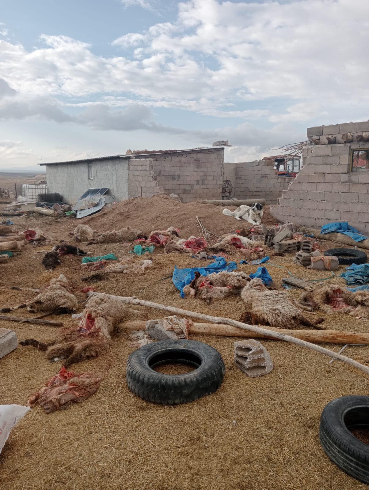 Bayram, “Taşkale Atatürk Mahallesi'nde Üreticimiz Soner Kaynakçıoğlu’na ait ahır çatısının ana kirişin kırılması sonucu çökmüş 20 tane koyun telef olmuş Allah beterinden korusun çok üzücü bir manzara zor durumda olan ve yaklaşık 300 bin TL civarında hasar oluşan üreticimize geçmiş olsun” dedi.