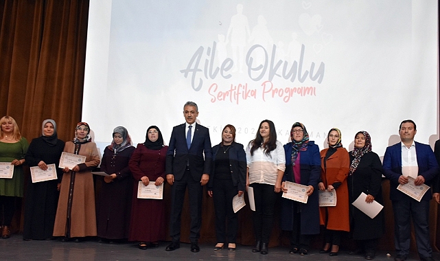 Piri Reis Kültür Merkezi'nde gerçekleşen sertifika dağıtım töreni Aile Okulu Eğitimi çerçevesinde hazırlanan videonun izlenmesiyle başladı. Ardından Aile Okulu Eğitimine katılan Şerife Doğan'ın "Çocuğum ve Ben" isimli yazısını okuyarak devam eden programın son bölümünde Aile Okulu Projesi kapsamında eğitim alan velilere sertifikaları Vali Tuncay Akkoyun, İl Emniyet Müdürü Ayhan Taş ve İl Millî Eğitim Müdürü Mehmet Çalışkan tarafından verildi.