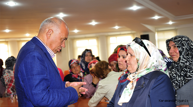 Sohbet havasında gerçekleşen ziyarette hanımlarla fikir alışverişinde bulunan Belediye Başkanı Ertuğrul Çalışkan, belediye çalışmaları hakkında da bilgi verdi. AK Parti Karaman Kadın Kollarına nazik ziyaretlerinden dolayı teşekkür eden Başkan Çalışkan: “Ülkesi, memleketi ve milleti için Kadın Kollarımız,inandığımız değerlerin yüceltilmesi için bugüne kadar hep büyük bir özveriyle çalıştılar.Ben siyasette fedakârca ve hiçbir beklentisi olmadan çalışmalarını sürdüren kadınlarımızı, takdir ediyorum. Karaman Belediyesi olarak sosyal projelerimizin merkezinde hanımlar bulunuyor. Onların topluma katkılarını arttırmak, el becerilerini geliştirmek, bu şehrin yaşantısında daha aktif rol almalarını sağlamak ve gerek maddi, gerekse manevi destek olmak için birçok çalışma yürütüyoruz.Kadın ve Aile Hizmetleri Müdürlüğümüz bünyesinde çalışmalar yürüten Mümine Hatun Kültür Merkezi’nde hanımlara yönelik hizmetler sunuluyor. Hanımlarımız bu merkezde; spordan çeşitli branşlarda kurslara, psikolojik destekten eğitime kadar değişik hizmetlerden faydalanabiliyor. Kent Konseyi bünyesinde oluşturduğumuz Kadın Meclisimiz, farklı konularda eğitim seminerleri ve konferanslar düzenliyor. Bunun yanında mikro kredi ile hanımlarımıza kendi işlerini kurmaları konusunda destek sağlıyoruz” dedi.