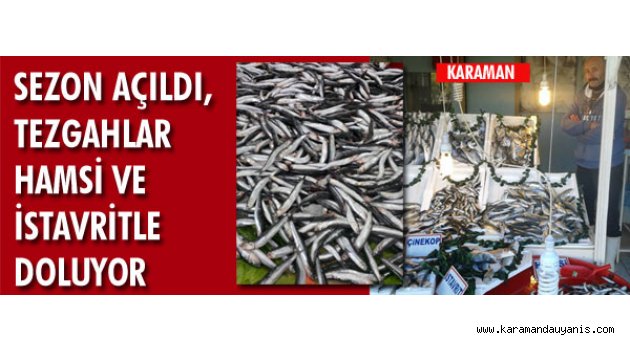 Karaman’da balıkçı esnafı hamsilerler tezgahını süslemeye başladı.