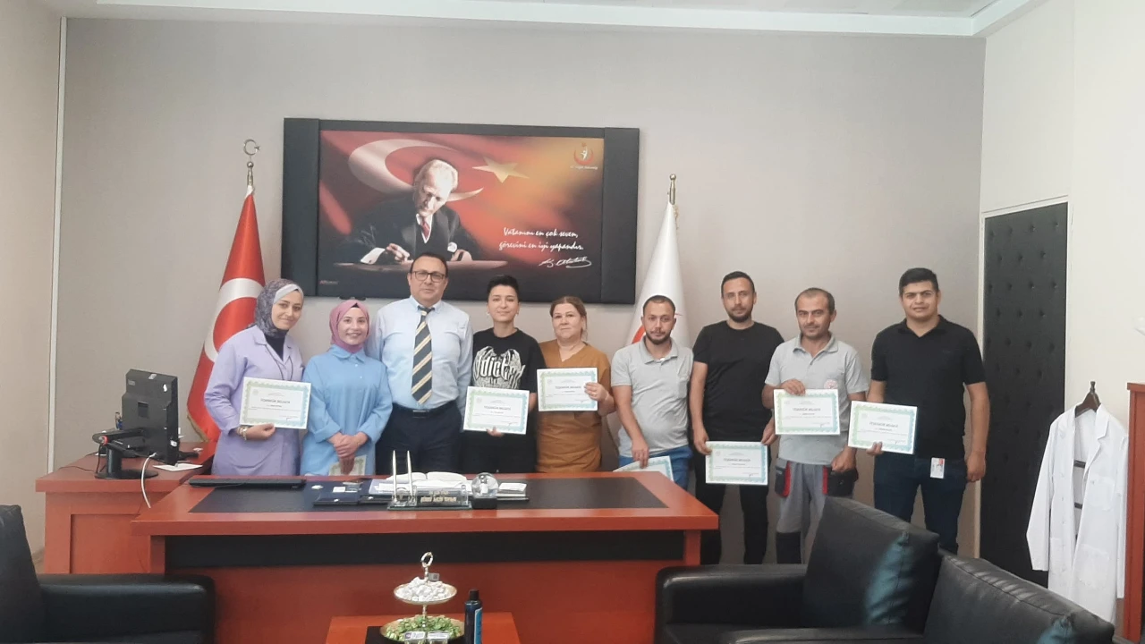 Başhekimlik makamında yapılan belge takdim töreninde ilgili personellere başarı belgelerini takdim eden Başhekim Dr. Öğr. Üyesi Şükrü Salih Toprak çalışanlara teşekkür ederek özverili ve gayretli çalışmalarının devamını diledi.