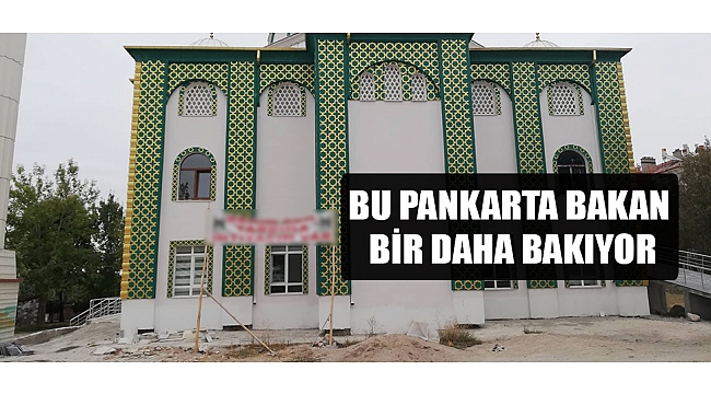Akabe Camii önüne caminin yaptırma ve yaşatma derneği tarafından yaptırılan pankart, espirili bir dille yardımseverlerin ilgisini çekmeyi amaçlıyor.