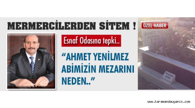 Ancak merhum Yenilmez’in mezar taşlarının Konya’da bir firmaya yaptırılması Karamanlı mermercileri üzdü. Bu konuda oda’ya sitem eden mermerciler gazetemize dert yandı. Mermerciler yaptığı açıklamada,