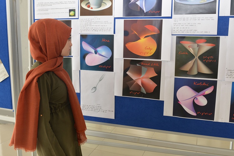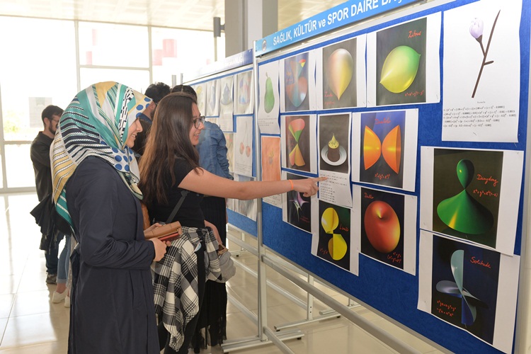 KMÜ Matematik Bölümü tarafından 'formül, matematik ve sanat' üçlüsüne dikkat çekmek için düzenlenen sergide, cebirsel yüzeyleri çizebilen Surfer adlı bilgisayar programında oluşturulan üç boyutlu görseller ve bunların denklemlerine yer verildi.