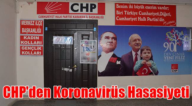 CHP Karaman İl Başkanlığı tarafından yapılan açıklamada, koronavirüs salgını nedeniyle bir süre ziyaretçi alımının durdurulduğu bildirildi. 17 Mart itibariyle il başkanlığı binası ziyaretlere kapatıldı.