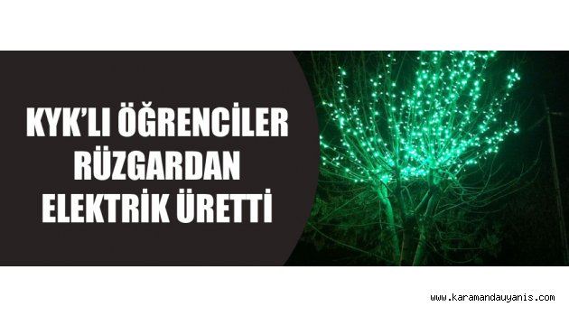 Karaman Piri Reis Yurdunda barınan öğrenciler kıt imkânlarla tamamen atıl durumda bulunan malzemelerle rüzgârlardan elektrik üretmeyi başarmışlardır. Rüzgârdan elde etmek için kamyonların çıkma şarjlı dinamosuna atıl durumda bulunan saclardan pervane yapılmıştır.
