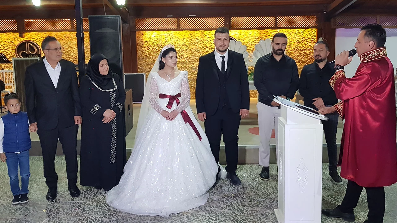Düğünpark Yazlık Doğa Salonunda gerçekleştirilen düğün törenine çiftin yakınları, arkadaşları ve aileleri katılarak mutluluklarına ortak oldular.