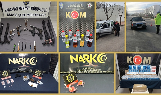 Ayrıca denetimlerde 10 adet ruhsatsız tabanca, 5 adet tüfek, 7 adet kesici ve delici alet, 113 gram uyuşturucu madde, 47 adet uyuşturucu hap, 235 kilogram kaçak tütün, 8 bin 780 adet bandrolsüz makaron, 30 bin adet bandrolsüz boş makaron, 8 şişe sahte içki ve içki yapımında kullanılan malzemeler ele geçirildi.
