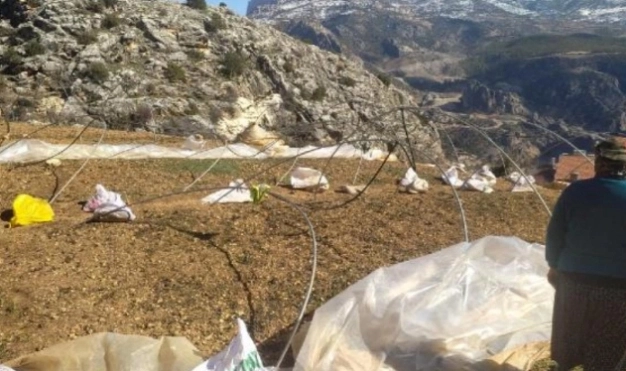 Ermenek ilçesinde gece saatlerinde fırtına etkili oldu, Ağaççatı köyündeki 12 dönümlük sebze seraları yıkıldı.