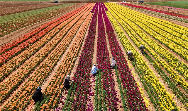 Karaman'ın Kazımkarabekir ilçesine bağlı Kızılkuyu köyünde bulunan lale tarlasında hasat sürecine geçildi. 50 dekarlık lale bahçesinde lalelerin taç yapraklarının işçiler tarafından kırılması işlemi ile başlayan hasat süreci, haziran ayında lale soğanlarının topraktan çıkarılması ile sona erecek.