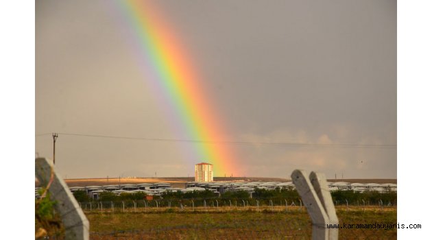 Karaman'da etkili olan yağışın ardından şehrin dışında oluşan gökkuşağı güzel görüntü oluşturdu.