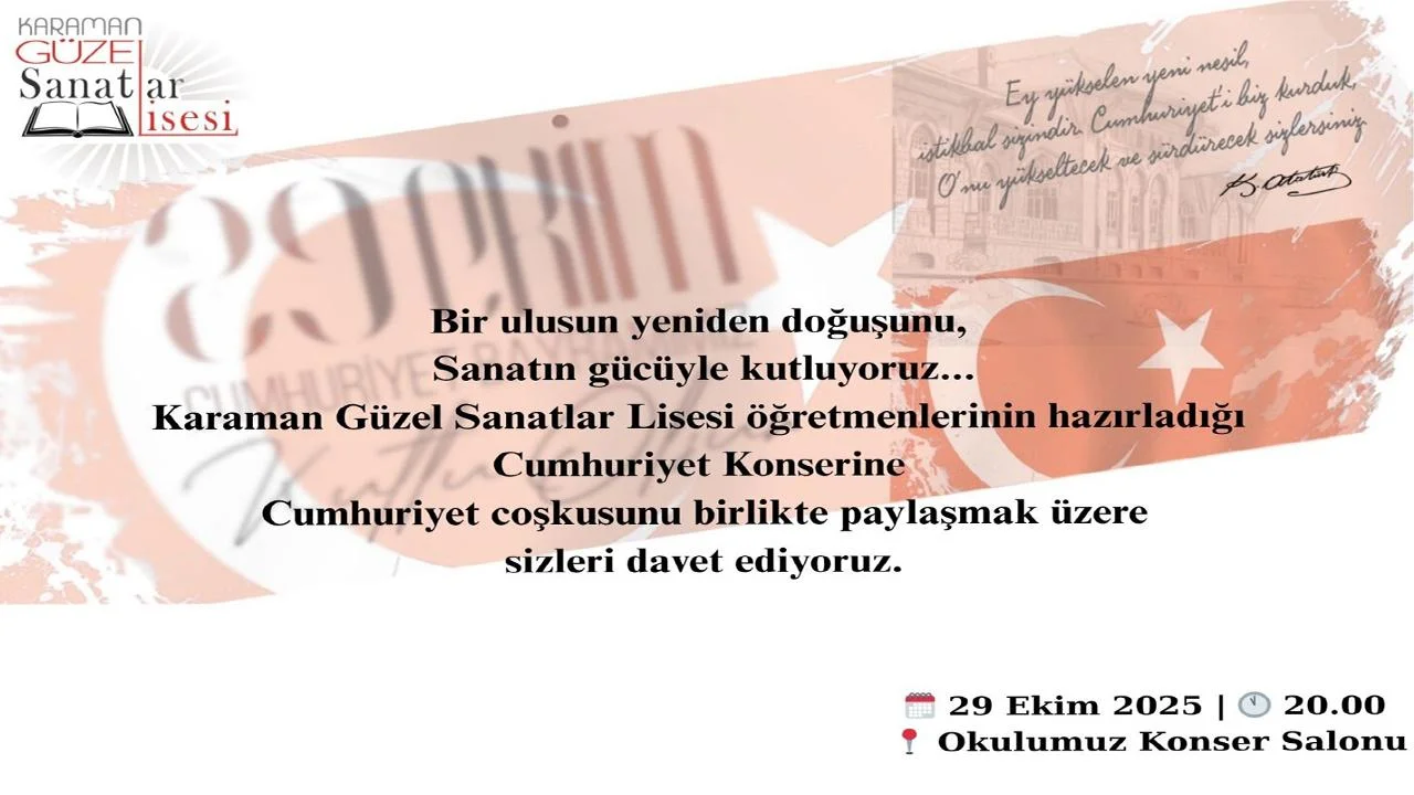 Karaman Güzel Sanatlar Lisesi, 29 Ekim Cumhuriyet Bayramı nedeni ile “Cumhuriyet Konseri” verecek.