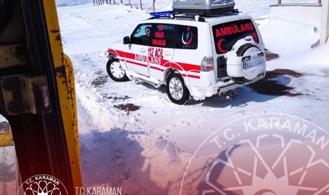 Karaman İl Özel İdaresi ekipleri kar yağışı nedeniyle kapanan köy yollarını açmaya devam ederken 112 Acil Çağrı Merkezinden gelen ihbar üzerine Akpınar ve Muratdede Köyüne giden ambulansların yolda kaldığı haberini alan ekipler vakit kaybetmeden olay yerine ulaşarak yolu açmış ve Ambulansların hastalara müdahalesi gecikmeden yapılarak hastaneye yetiştirildi.