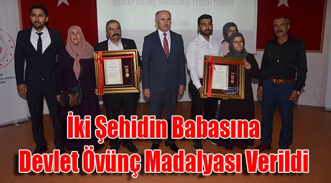 Karaman'da 2 şehidin babasına Devlet Övünç Madalyası ve Beratı düzenlenen törenle verildi.