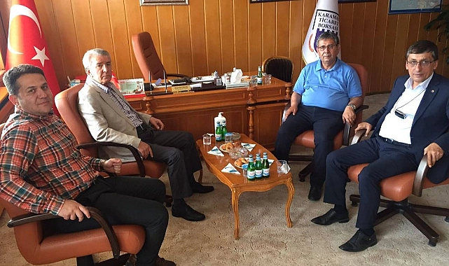 Türk- İş Genel Eğitim Sekreteri ve aynı zamanda TEKSİF Sendikası Genel Başkanı Nazmi Irgat, Ticaret Borsası üyesi (Dünürü) Ahmet İncedal ile birlikte Karaman Ticaret Borsası Yönetim Kurulu Başkanı Ekrem Çavaş ve Genel Sekreter Fatih Fındık’ı ziyaret etti.