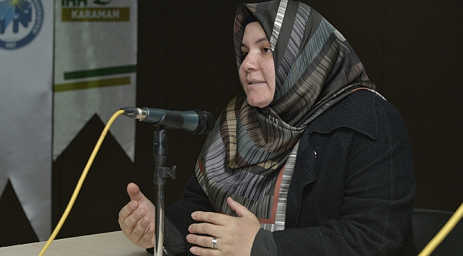 Karamanoğlu Mehmetbey Üniversitesi (KMÜ) İnsan Hak ve Hürriyetleri Öğrenci Topluluğu tarafından ‘İslam Coğrafyası’ konulu konferans düzenlendi. İnsani Yardım Vakfı (İHH) temsilcisi Fatma Türk’ün verdiği konferansa üniversite personeli ve öğrenciler katıldı.