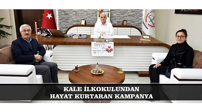 Okullarda yürütülen başarılı kampanyalara bir yenisi daha eklendi. Kale İlkokulu öğretmen ve öğrencilerinin yanı sıra velilerin destek olduğu kan bağışı düzenlenecek. Kale İlkokulu Müdürü Emin Uğuz İl Milli Eğitim Müdürü Mevlüt Kuntoğlu’nu ziyaret ederek kampanyaya ilişkin bilgiler verdi.