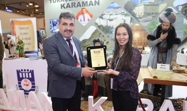 Karaman Belediyesi'nin İstanbul'da gerçekleşen EMITT Fuarında açmış olduğu stant her bölgeden gelen katılımcıların büyük ilgisini çekti. Türk Dilinin Başkenti, Atatürk'ün ata yurdu, Yunus Emre'nin, Piri Reis'in, Kazım Karabekir Paşa'nın memleketi, Bisküvi şehri, bulgur şehri, elma şehri, gıda ve sanayinin öncü şehri ve medeniyetlerin şehri, kadim memleket Karaman'ı en iyi şekilde anlatan standa fuarın organizatörü Gülşen Arslan tarafından, "destinasyon (varış noktası ve gezilecek yerler) dalında bölgenin havasını en iyi şekilde yansıtan stant" ödülü verildi.