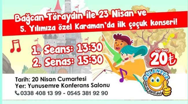Karaman Gülenyüz Oyun ve Parti Evi 5. yılına özel olarak bir ilke imza atarak masal şarkıları çocuk konseri düzenliyor.
