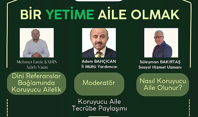 Karaman İl Müftülüğü Aile ve Dini Rehberlik Bürosu tarafından 'Bir yetime aile olmak' başlıklı panel düzenlenecektir. Koruyucu aile konusunun ele alınacağı bu önemli panele tüm halkımızı davet ediyoruz." denildi.