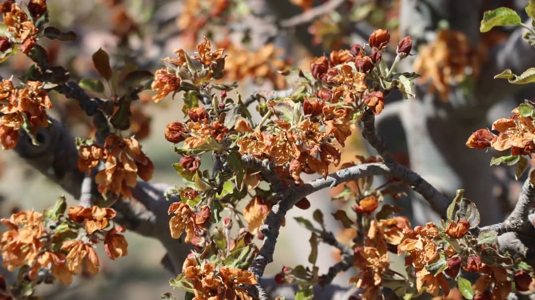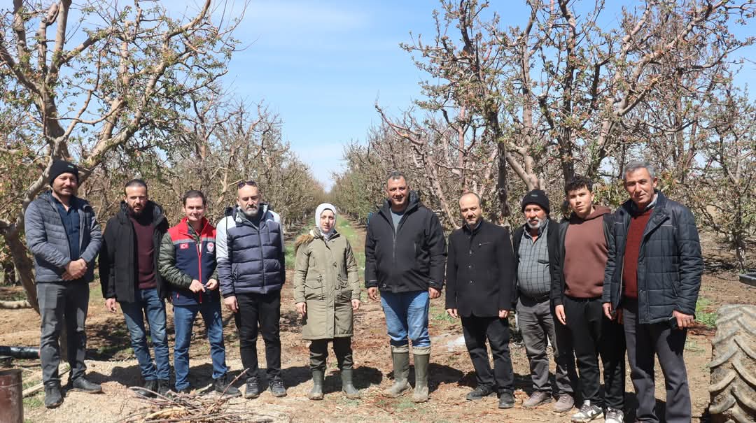 Karaman'da meydana gelen zirai don olayı sonrası Karaman Tarım ve Orman İl Müdürü Hatice Bulut, Konya TARSİM Bölge Müdürü Osman Ağit ve Elma Üreticileri Birliği Başkanı Celil Serim ile birlikte Atatürk Mahallesinde bulunan meyve bahçelerinde don zarar tespit çalışmalarına katıldı.