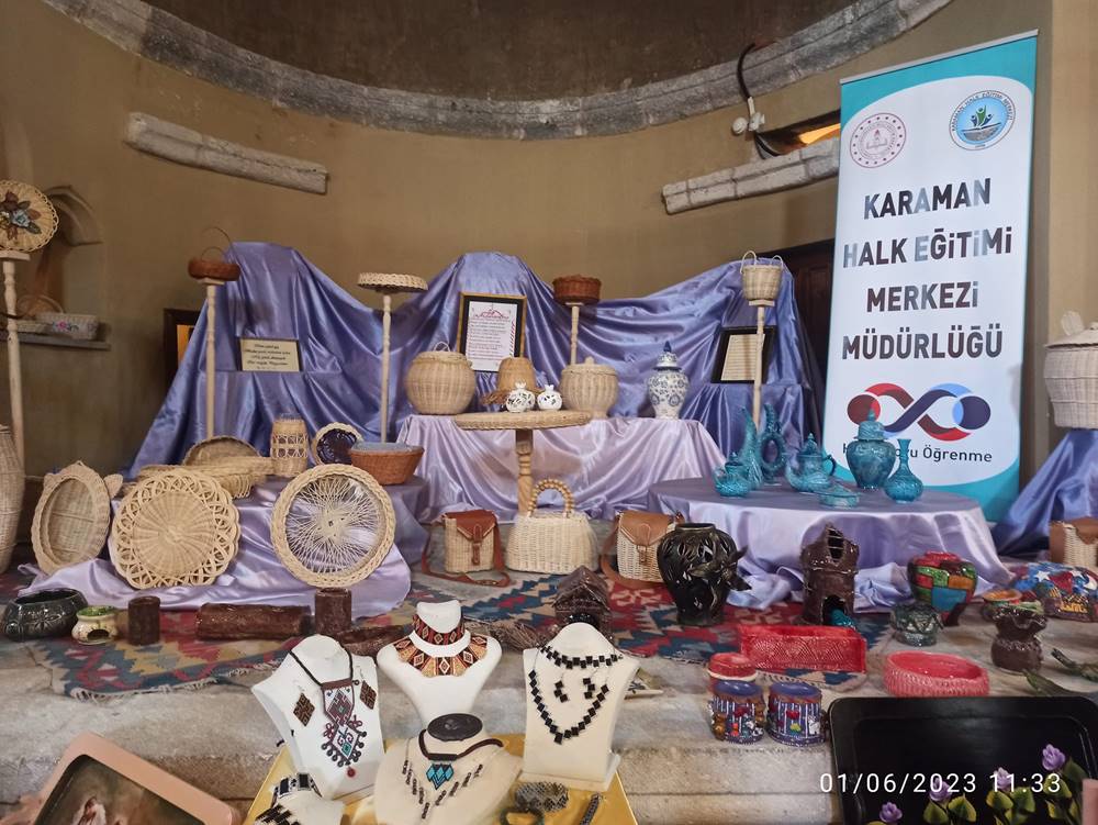 Karaman'da “Hayat Boyu Öğrenme Haftası” Etkinlikleri kapsamında el sanatları sergisi açıldı.