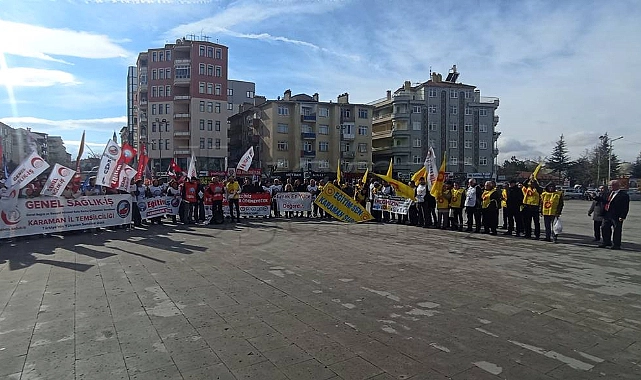 Karaman'da Birleşik Kamu-İş ve Kamu Emekçileri Sendikaları Konfederasyonu'nun (KESK) da arasında bulunduğu bazı konfederasyonlara üye kamu çalışanları, yapılan maaş artış oranına tepki amacıyla iş bıraktı.