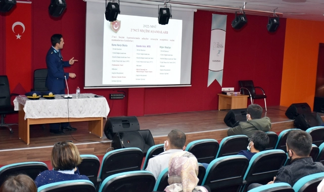 Millî Savunma Üniversitesinin (MSÜ) tanıtımının etkin bir şekilde yapılması, 2021-2022 eğitim ve öğretim yılı askerî öğrenci temin faaliyetine ilişkin sürecin ortaöğretim kurumlarında öğrenim gören öğrencilere doğru ve etkili bir şekilde anlatılması kapsamında Millî Savunma Üniversitesi Hava Astsubay Meslek Yüksekokulu Komutanlığı adına Hava Mühendis Üstteğmen Emre Uysal ile Hava Mühendis Astteğmen Mert Kahraman’ın katıldığı tanıtım semineri İl Millî Eğitim Müdürlüğü toplantı salonunda yapıldı.