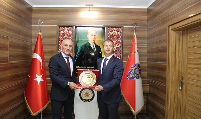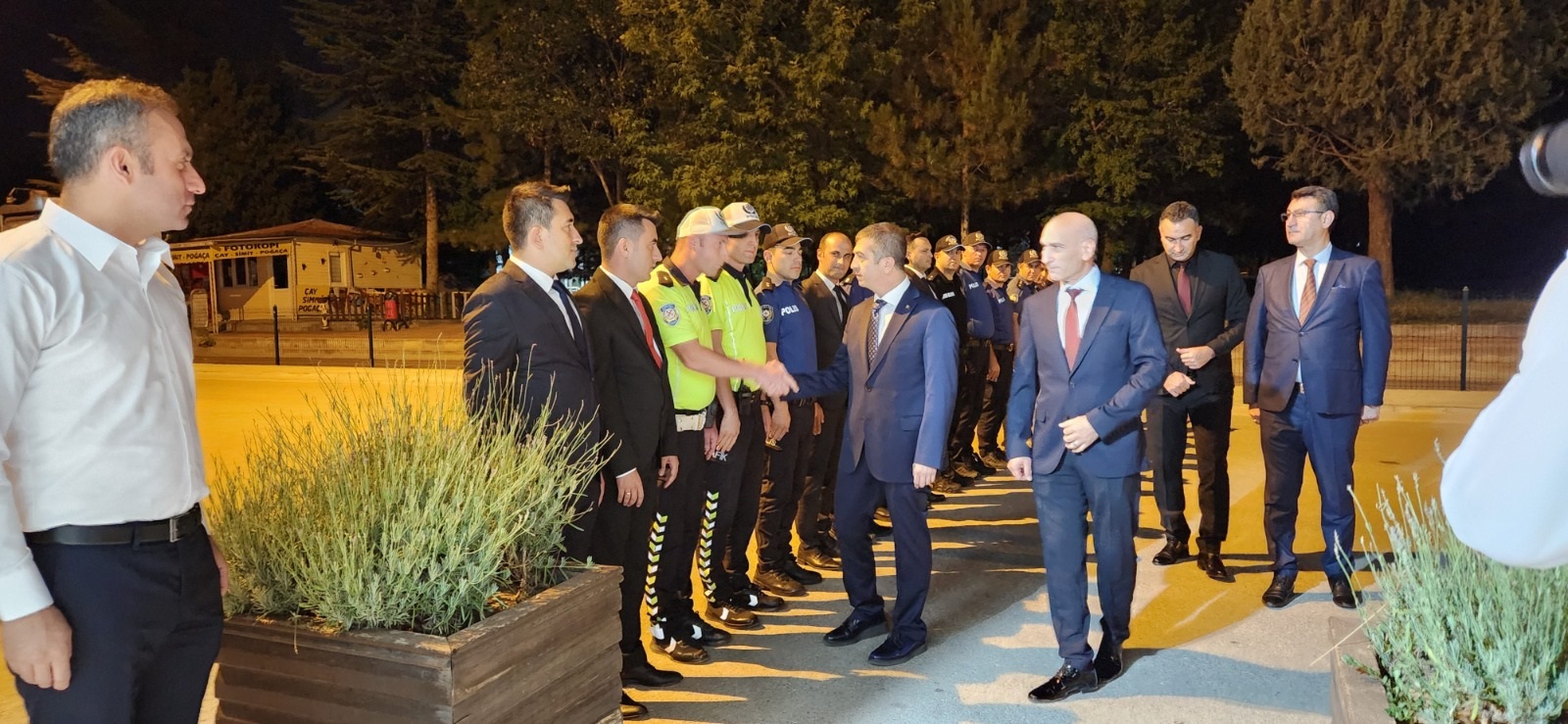 Turhan, İl Emniyet Müdürlüğü önünde Emniyet Müdürü Okumuş tarafından karşılandı.