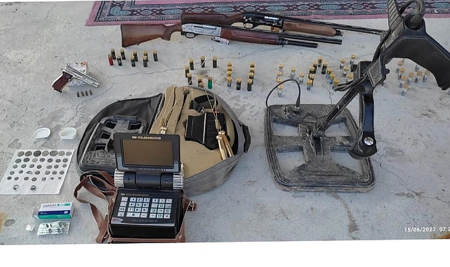 Şüphelilerin evlerinde yapılan aramada, 479 Adet Yeşil Reçeteye tabi hap, 4 Adet Cep Telefonu, 4 Adet Sim Kart, 3 Adet Av tüfeği, 1 Adet Tabanca, 4 Adet Tabanca fişeği, 37 Adet Tarihi eser ele geçirildi.