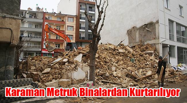 Karaman Belediyesi Fen İşleri Müdürlüğü’ne bağlı ekipler, insanların can güvenliğini tehdit etmesinin yanı sıra, sosyal riskler oluşturan ve kent estetiğini bozan metruk binaları tek tek yıkmaya devam ediyor. Yıkılan bu virane binaların bulunduğu yere mahalle sakinlerinin kullanabileceği şekilde; çocuk oyun alanı, otopark gibi alanlar oluşuyor.