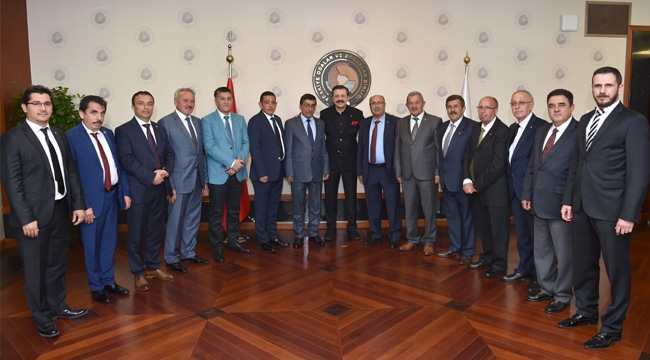 Karaman Ticaret Borsası Yönetim Kurulu Başkanı Ekrem Çavaş veMeclis üyeleri TOBB Başkanı M. Rifat Hisarcıklıoğlu’nu makamında ziyaret etti.