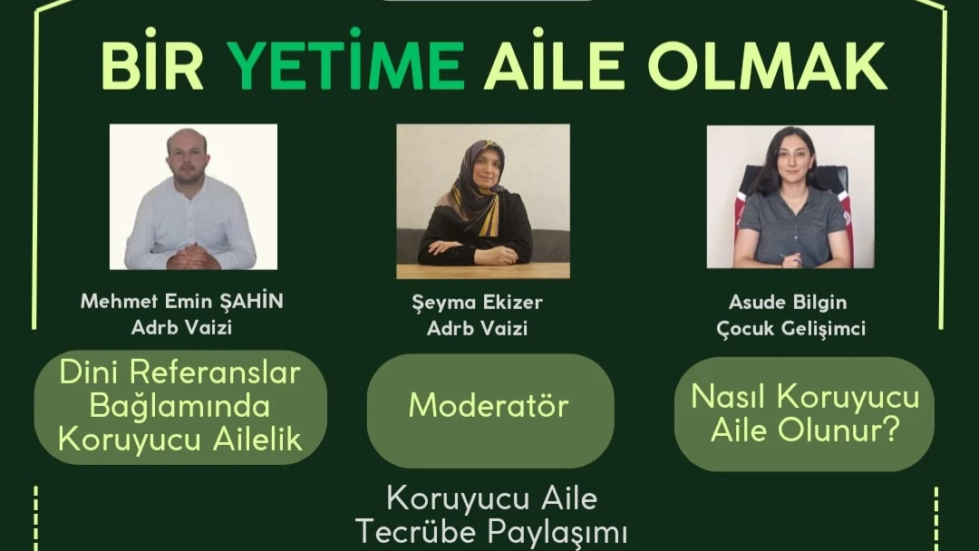 Bu anlamlı etkinlikte, koruyucu ailelik hakkında dini referanslar, yasal süreçler ve tecrübe paylaşımları yer alacak. Panelde uzman konuşmacılarımızın sunumlarıyla, gönlünüzde bir yetime yer açmanın yollarını birlikte keşfedeceğiz.