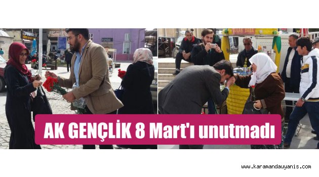 AK Parti Karaman Gençlik Kolları Başkanı Mustafa Kale ve yönetimi, 8 Mart Dünya Kadınlar Günü münasebetiyle çarşı ve sokaklarda tüm bayanların Kadınlar gününü kutlayarak karanfil dağıttı.
