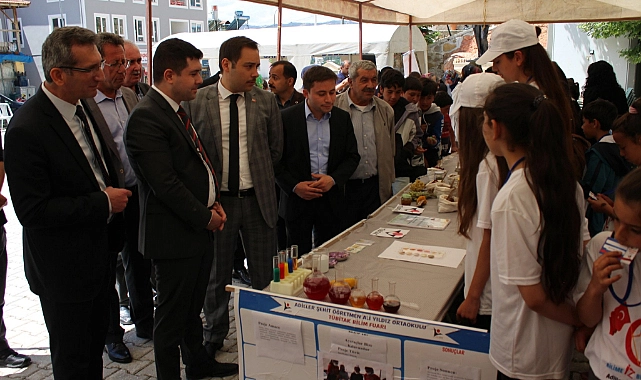 Açılışın ardından Kaymakam Mehmet Bircan ve beraberindekiler, Adiller Şehit Öğretmen Ali Yıldız Ortaokulu ve Mehmet Akif Ortaokulu öğrencileri tarafından hazırlanan projeleri inceleyerek projeler hakkında bilgiler aldı.