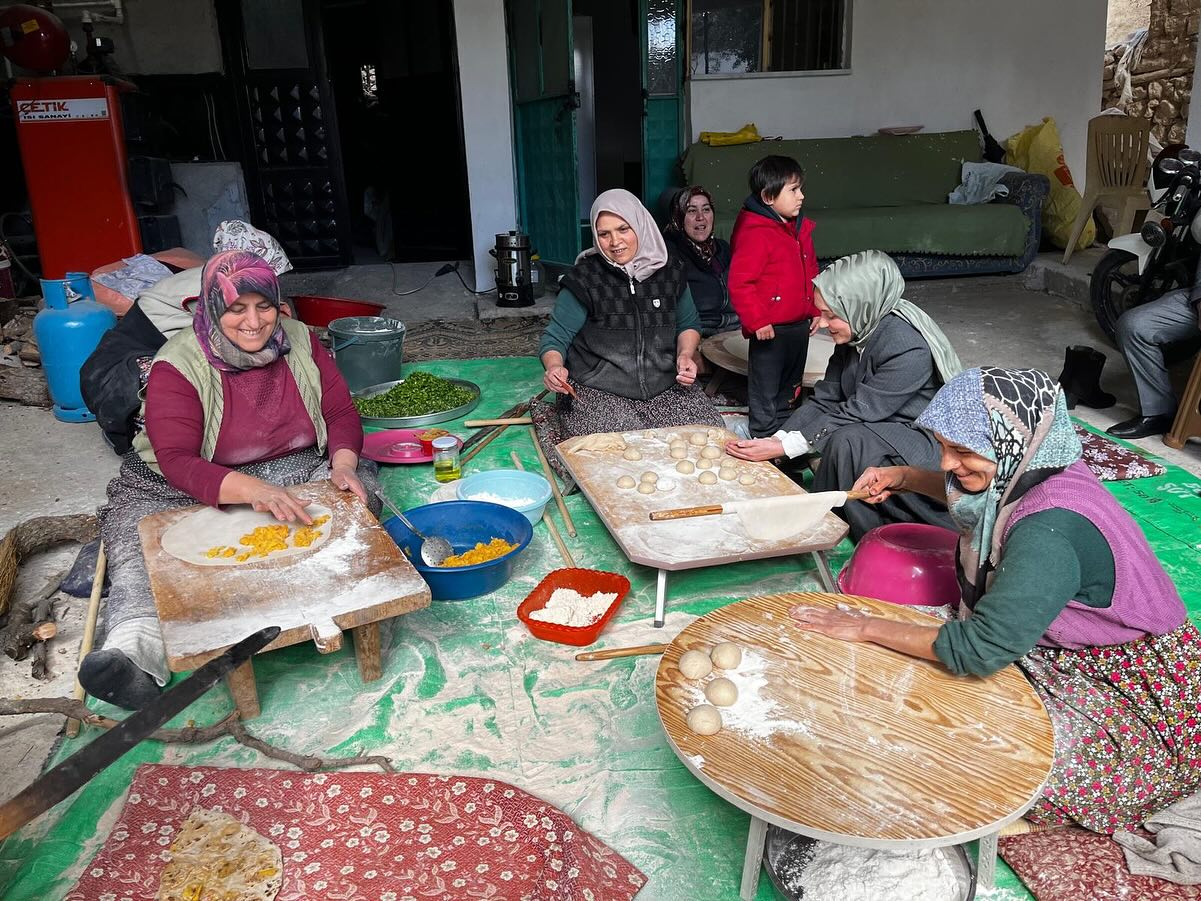 Köy ziyaretleri sırasında ekmek yapan kadınlarla birlikte börek yapan ve onlarla bir süre sohbet eden Kaymakam Çakır, köylü kadınların taleplerini ve ihtiyaçlarını dinledi.