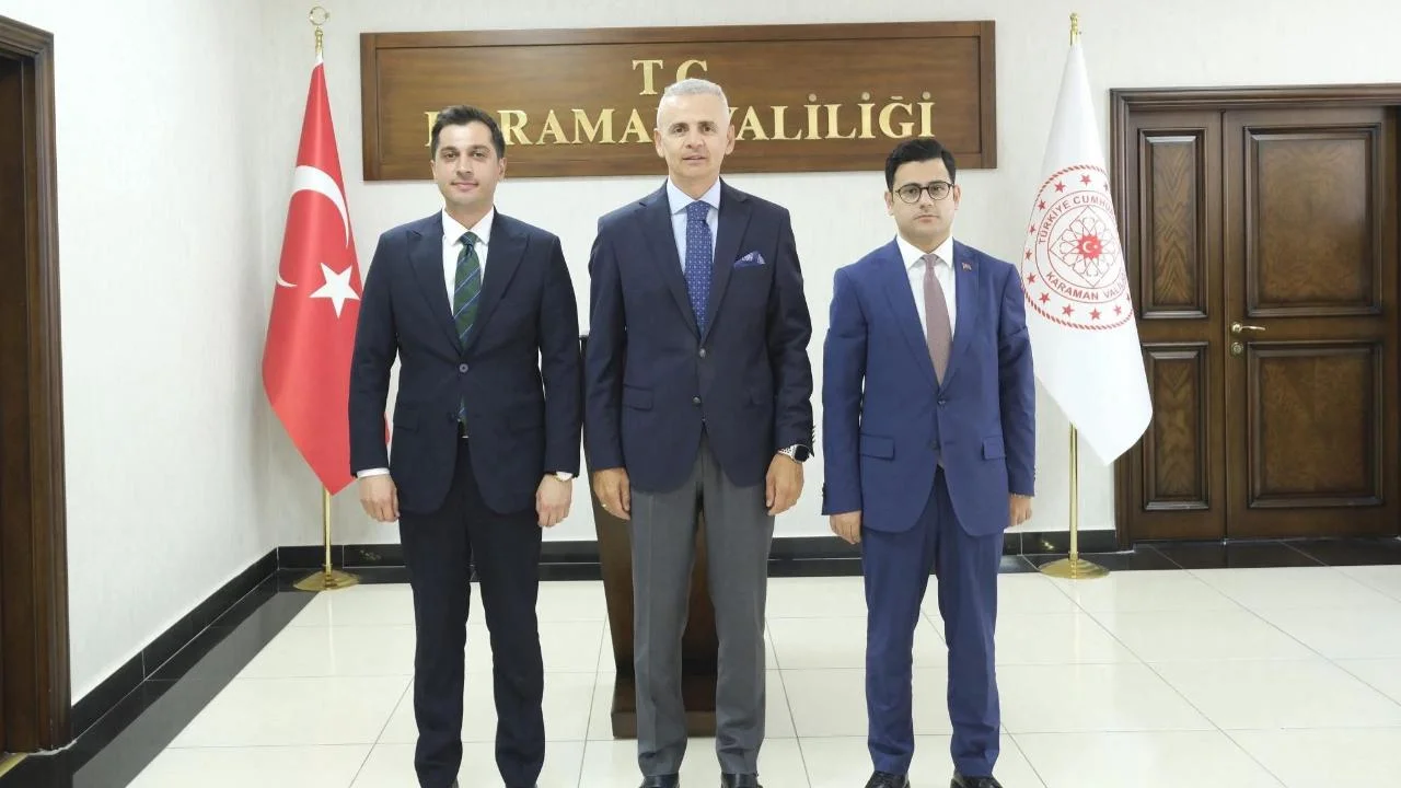İlimizdeki görev sürelerini tamamlayan Ermenek Kaymakamı Uğur Almalı ve Kazımkarabekir Kaymakamı Abdurrahman Albayrak, Vali Mehmet Fatih Çiçekli’yi ziyaret etti.