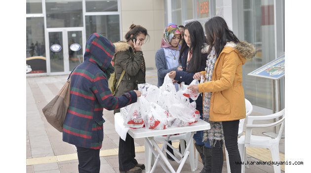 Karamanoğlu Mehmetbey Üniversitesi (KMÜ) Öğrenci Toplulukları tarafından Mevlid Kandili nedeniyle kandil simidi dağıtıldı. KMÜ Kültür Ahlak ve Medeniyet Topluluğu ile Üniversiteli Aktif Gençler Topluluğunun yerleşke içerisinde düzenlediği kandil simidi ikramına öğrencilerin ilgisi yoğun oldu.