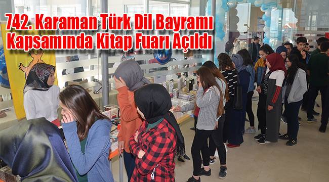 Karaman Valiliği, Karaman Belediyesi ve Karamanoğlu Mehmetbey Üniversitesi (KMÜ) işbirliğiyle 742. Karaman Türk Dil Bayramı ve Yunus Emre'yi Anma Etkinlikleri kapsamında kitap fuarı açıldı.