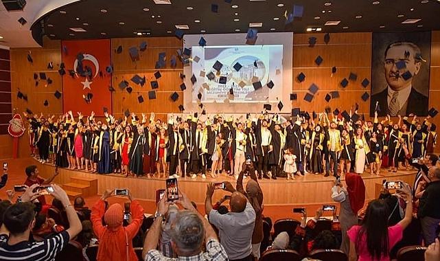 Yüksekokul birincisi Bedia Betül Doğan’ın mezuniyet kütüğüne ismini çakmasının ardından yüksekokulda dereceye giren öğrencilere ödülleri takdim edildi. Mezun olan öğrencilere mezuniyet belgelerinin verilmesinin ardından öğrenciler keplerini havaya atarak mezuniyet sevincini doyasıya yaşadılar.