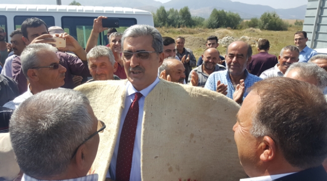 Başkan Recep Konuk’u Seydişehir’e girerken de davulla zurnayla karşılayan Seydişehirli üreticiler ayrıca Başkan Recep Konuk’a bir de kepenek giydirdiler.
