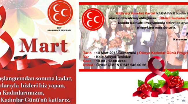 Milliyetçi Hareket Partisi İl Kadın Kolları, 10 Mart Cumartesi günü Kale Sosyal Tesislerinde bri araya geliyor.