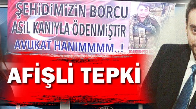 “Şehidimizin Borcu Asil Kanıyla Ödenmiştir Avukat Hanımmm!” ifadeleri kullanıldı. Afişi afiş gören vatandaşlar da bu eyleme destek verdi.