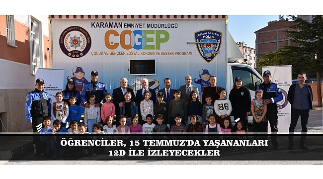 Ülkemizin bekası için canlarını seve seve veren şehitlerimizi anmak ve 15 Temmuz Kalkışmasına ilişkin bilgiler vermek amacıyla “15 Temmuz Çocukları” projesi kapsamında 7-11 yaş grubundaki ilkokul öğrencilerine yönelik hazırlanan 12D kısa metrajlı filmin gösterimi İl Milli Eğitim Müdürü Mevlüt Kuntoğlu ve İl Emniyet Müdürü Fikret Bayraktar’ın katılımı ile yapıldı.