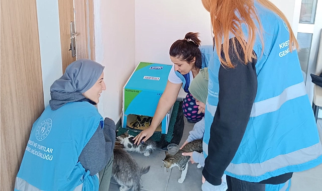 Karaman Gençlik ve Spor İl Müdürlüğüne bağlı Mehmet Emin Paşa Yurdu öğrencileri kış öncesi sokak kedileri için kendi evleri yaparak su ve mama kapları bıraktılar.