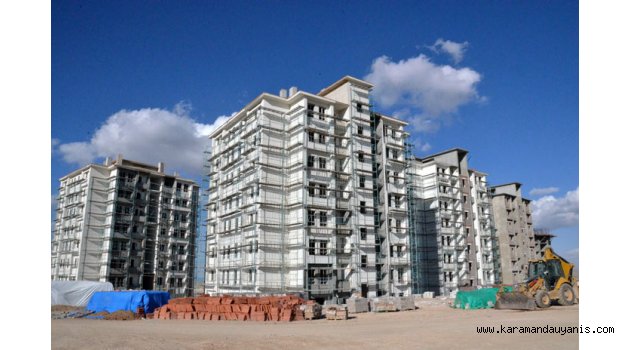 Karaman Organize Sanayi Bölgesi çalışanları için toplu konut projesi kapsamında toplam 428 konut ve 32 derslikli ilköğretim okulu yapılıyor. İşçiler için yapılan konutlarda çalışmaların hızla devam ettiği gözlendi.